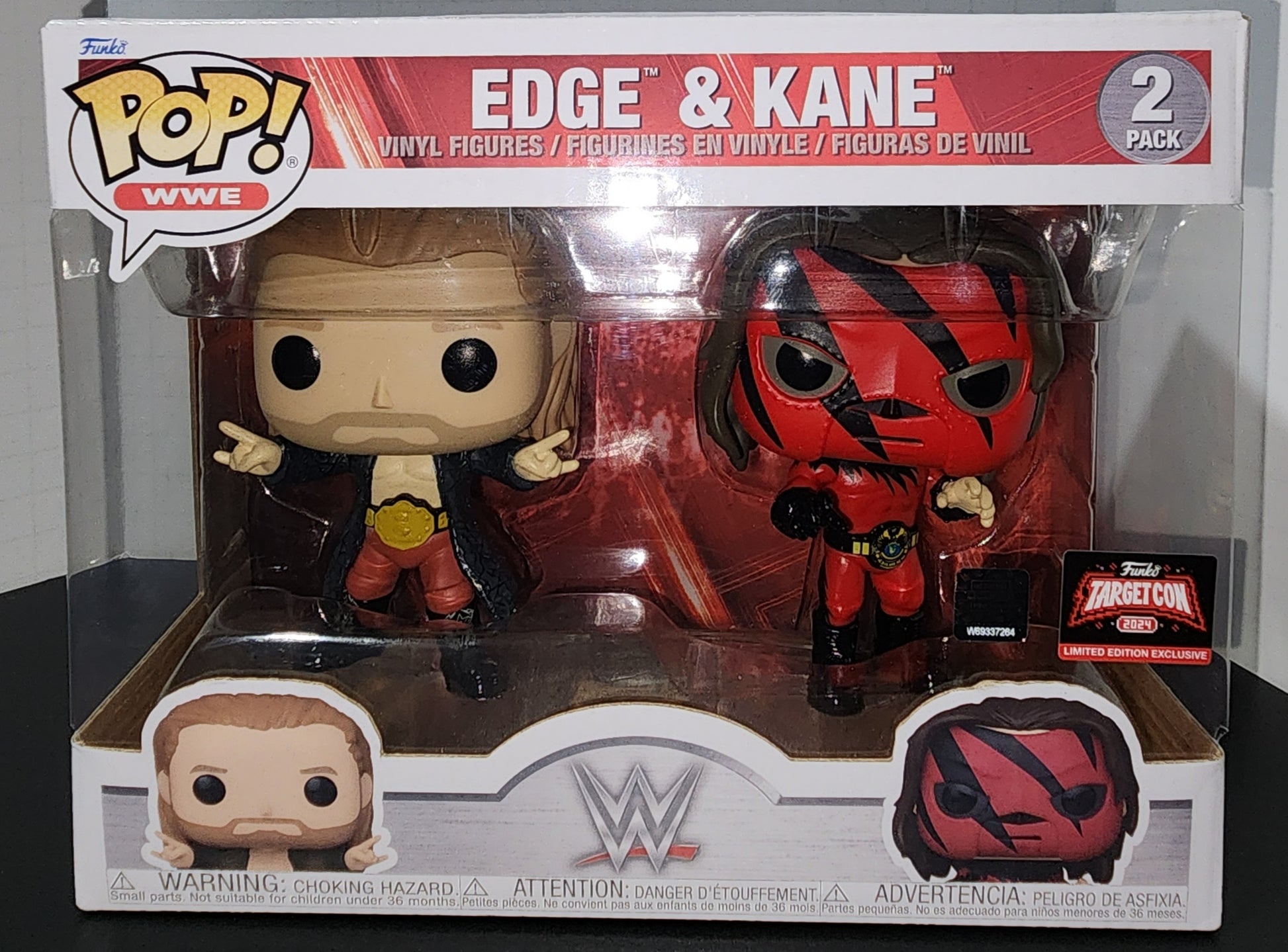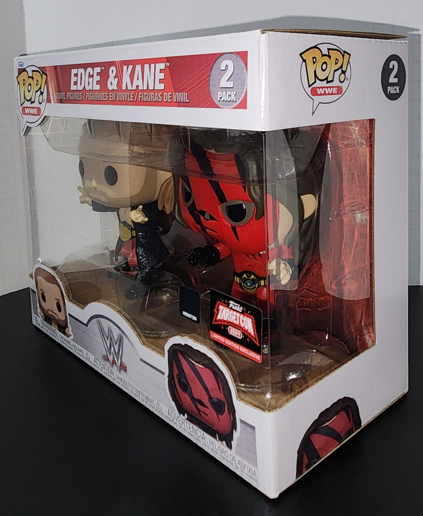 Get ready to rumble with the WWE Pop Edge And Kane 2 Pack! This exclusive Target Con pack features two of your favorite WWE superstars, Edge and Kane, in Pop form. Perfect for collectors and fans alike, don't miss out on adding this one-of-a-kind pack to your collection!